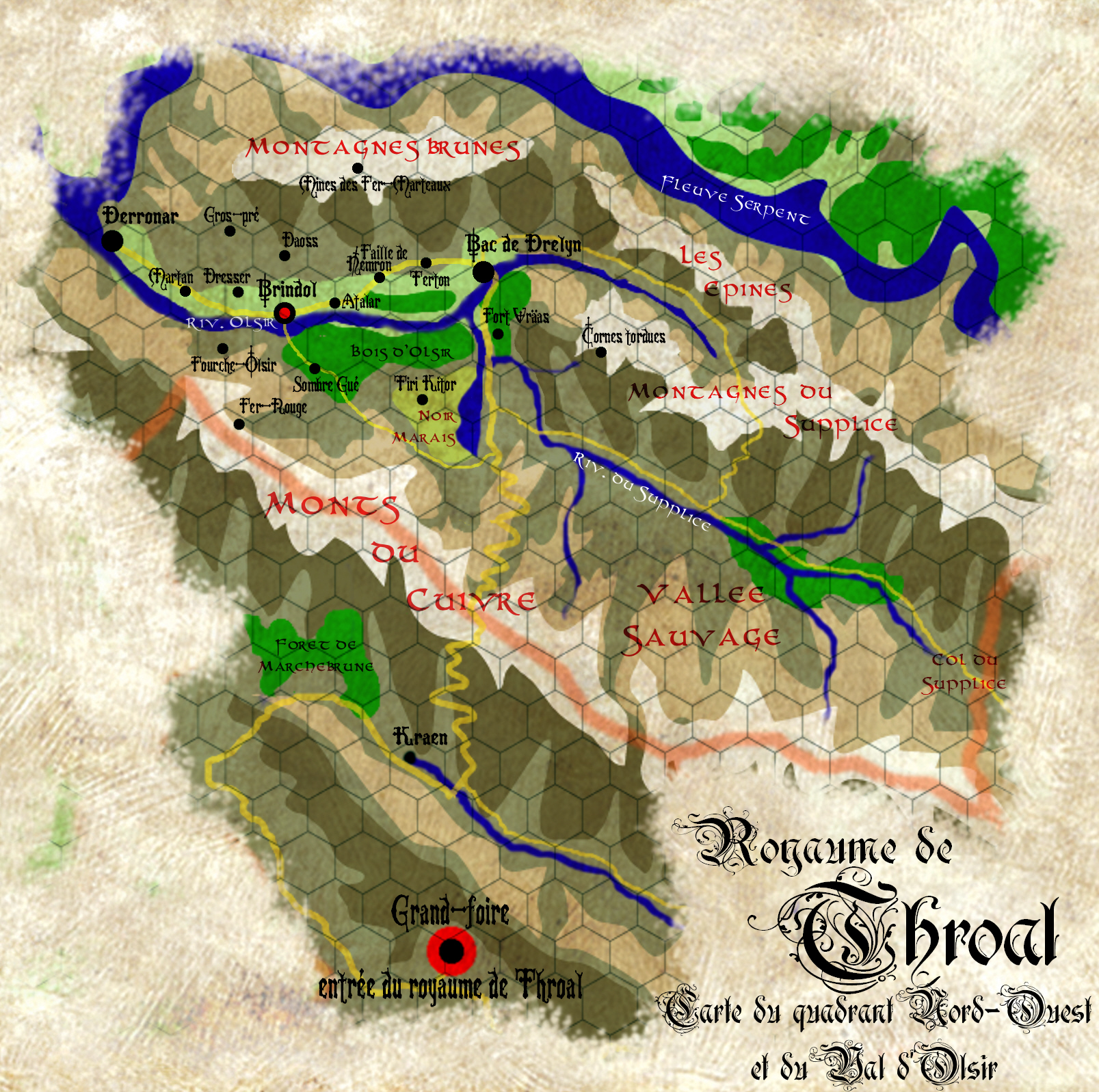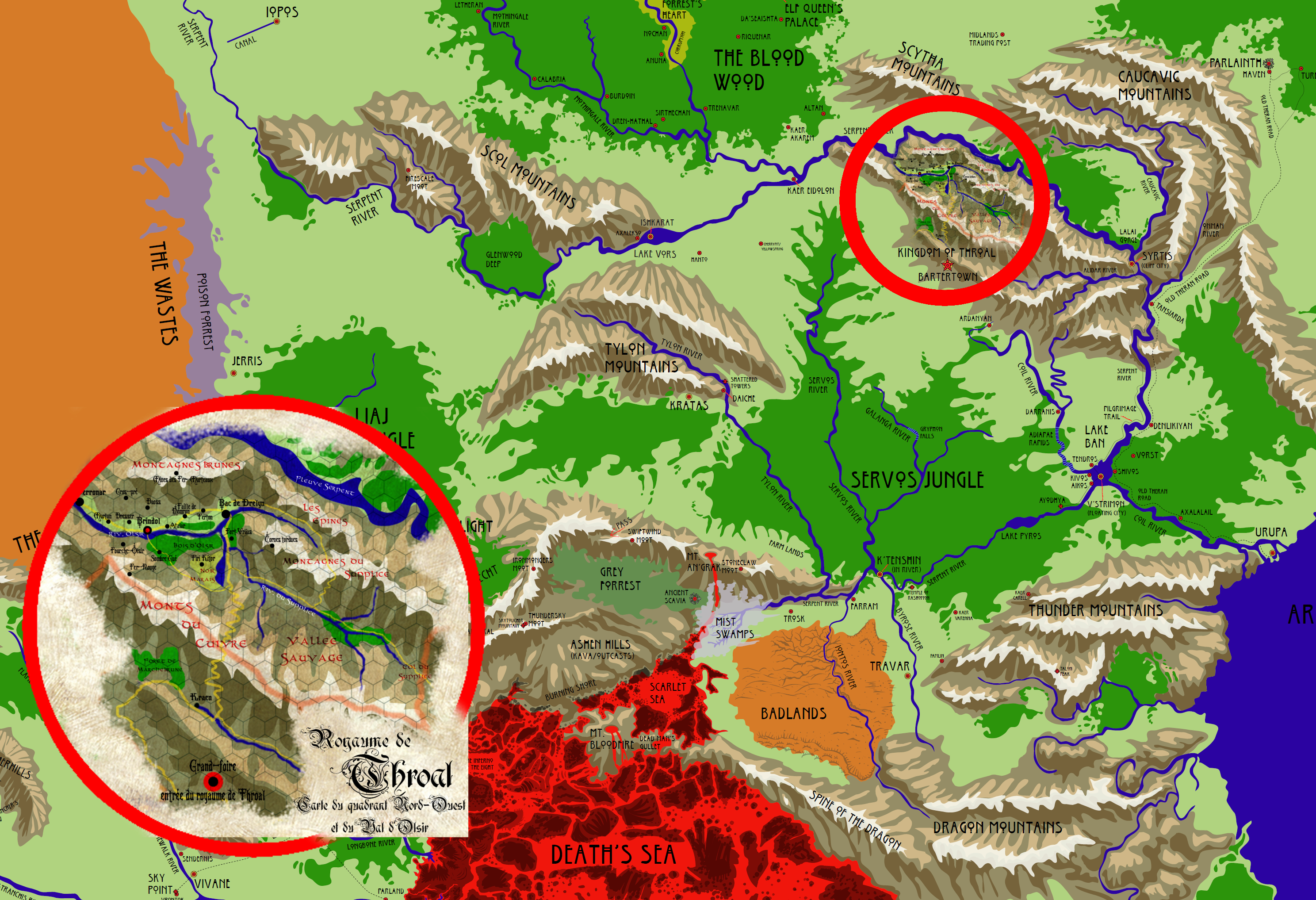 Après avoir réorganisé ce sujet de background, je vous propose deux cartes pour vous situer dans Barsaive. L'histoire débute aux abords du Fort Vräss, dans la vallée de l'Olsir, située au coeur de la baronnie du quadrant Nord Ouest du royaume de Throal.