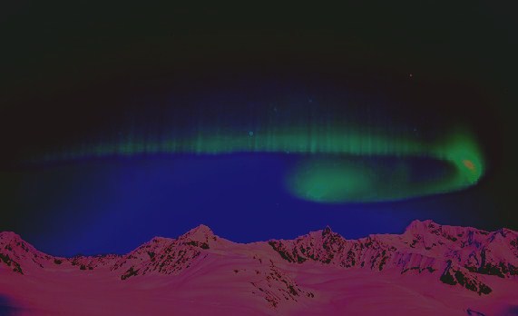 Seul le Bifrost apporte un peu de lumière dans le ciel que peine à refléter la neige qui recouvre le sol.