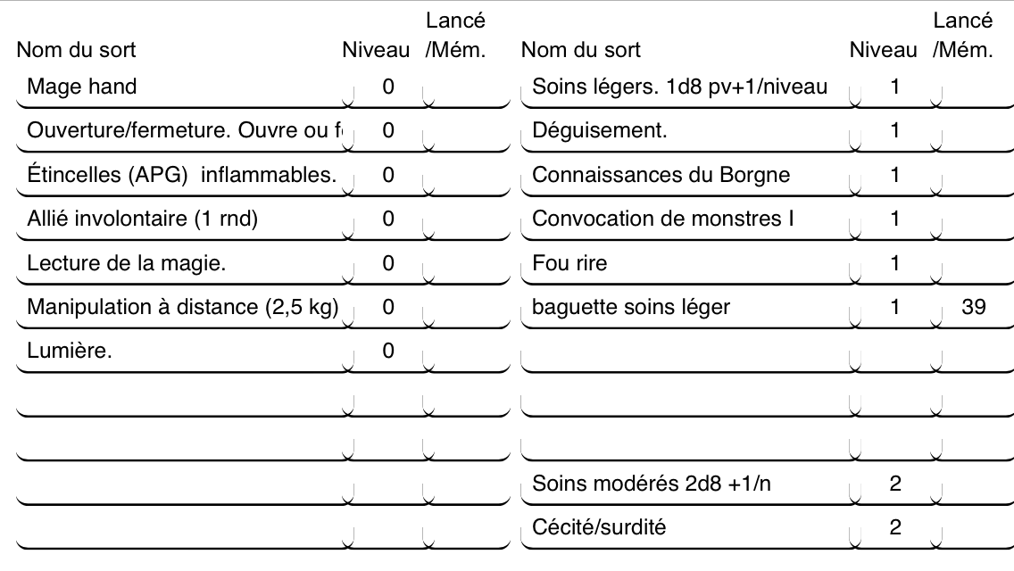 Je pensais que open/close était pour crocheter en fait ça ouvre les portes ouvertes,pour les pièges j'imagine mais j'ai Mage Hand ... J'aurais pas dû prendre ça bref