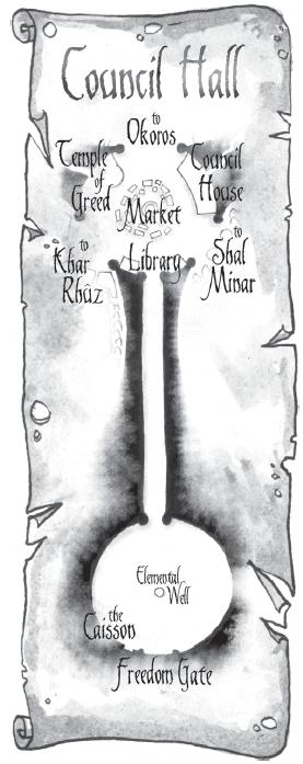 En face de la Porte de la Liberté se trouve un puits élémentaire, conçu pour accomplir les rites du Livre de Demain. Le puits contient de l'eau élémentaire et une bille de terre élémentaires affleurant juste la surface. La bille n'a pas bougé depuis des décennies, ce qui conduit parfois à des discussions passionnées entre les magiciens.