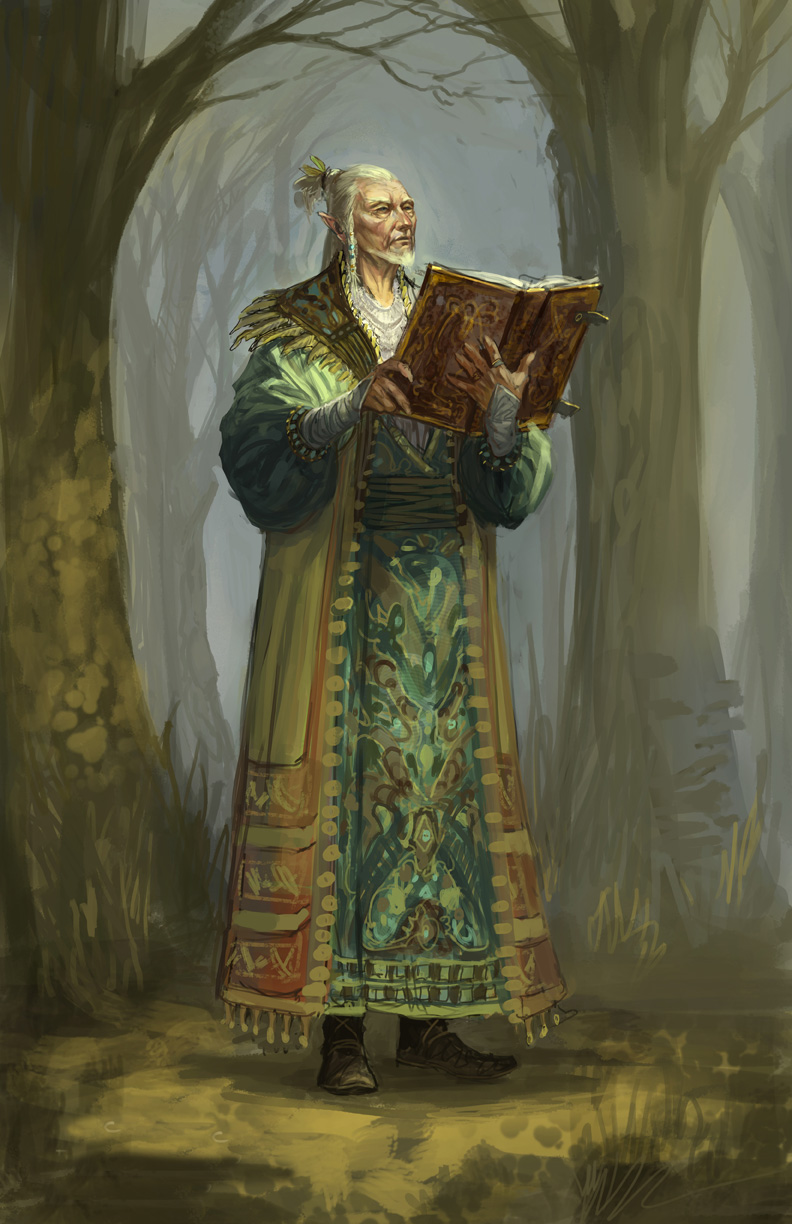 sceaux du kaer ainsi que des élémentaires. Il a récemment déménagé à Okoros avec son apprenti, un petit sylphelin bedonnant surnommé Broom.