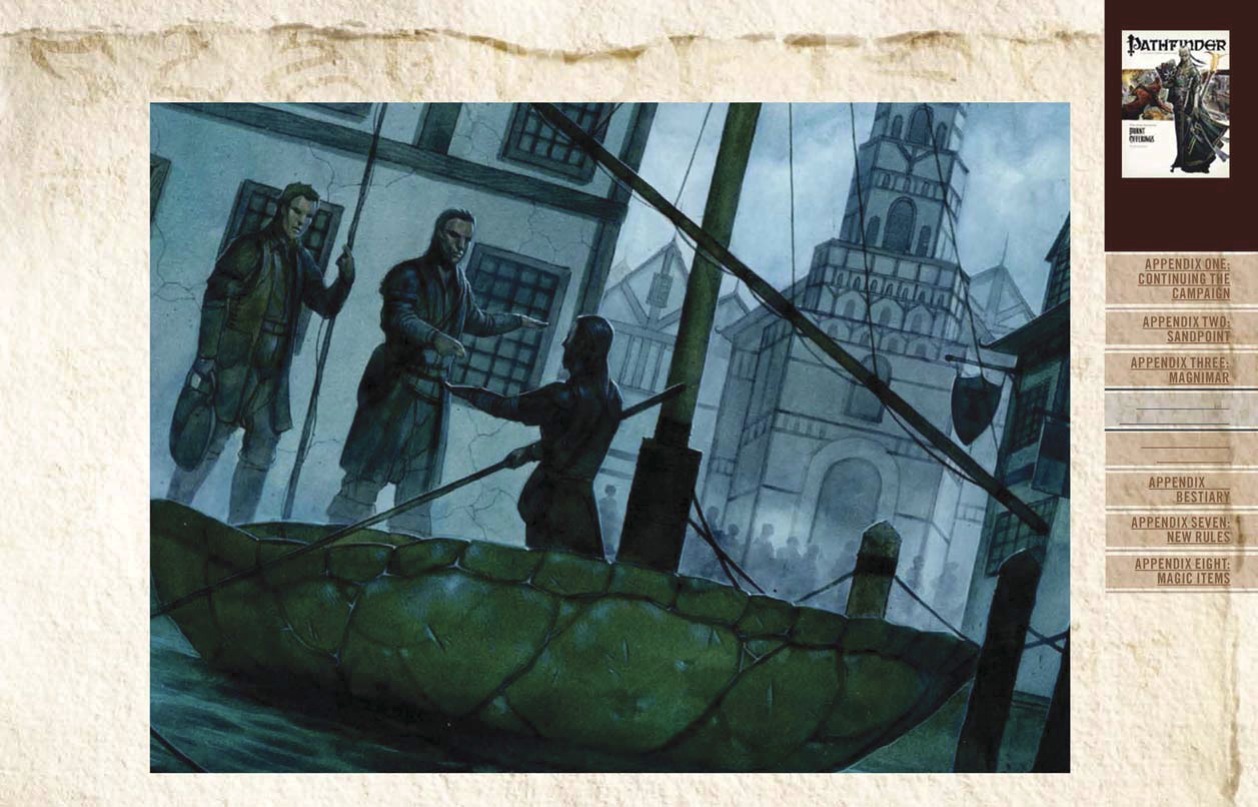 Dr Elysia Nightshade demeure depuis quelques années dans le village de Ilsurian, dans le nord de Sansdpoint et au sud de Dos de tortues. Préoccupé par les informations qui courent concernant le perte de fort Rannick et les évênement troublants concernant les inondations de la rivière des cranes[1], il décide de se diriger plein nord pour évaluer les risques de la rivière sur son propre village. En remontant la rivière, son expertise a été revendiqué lorsque le Paradis, sorte de Casino flottant à coulé avec à son bord plus de 48 personnes. Son enquête a conclut qu'environ la moitié des pertes venait du village de Dos de tortue, qui doit son nom à son traversier qui traverse la rivier du crane dans une carapace d'une tortue géantes, et à une particularité très surprenante. Tous les cadavre portait un tatou représantant une étoile à sept branche.