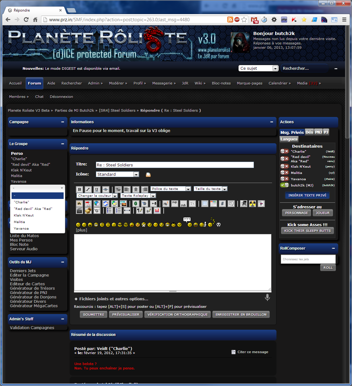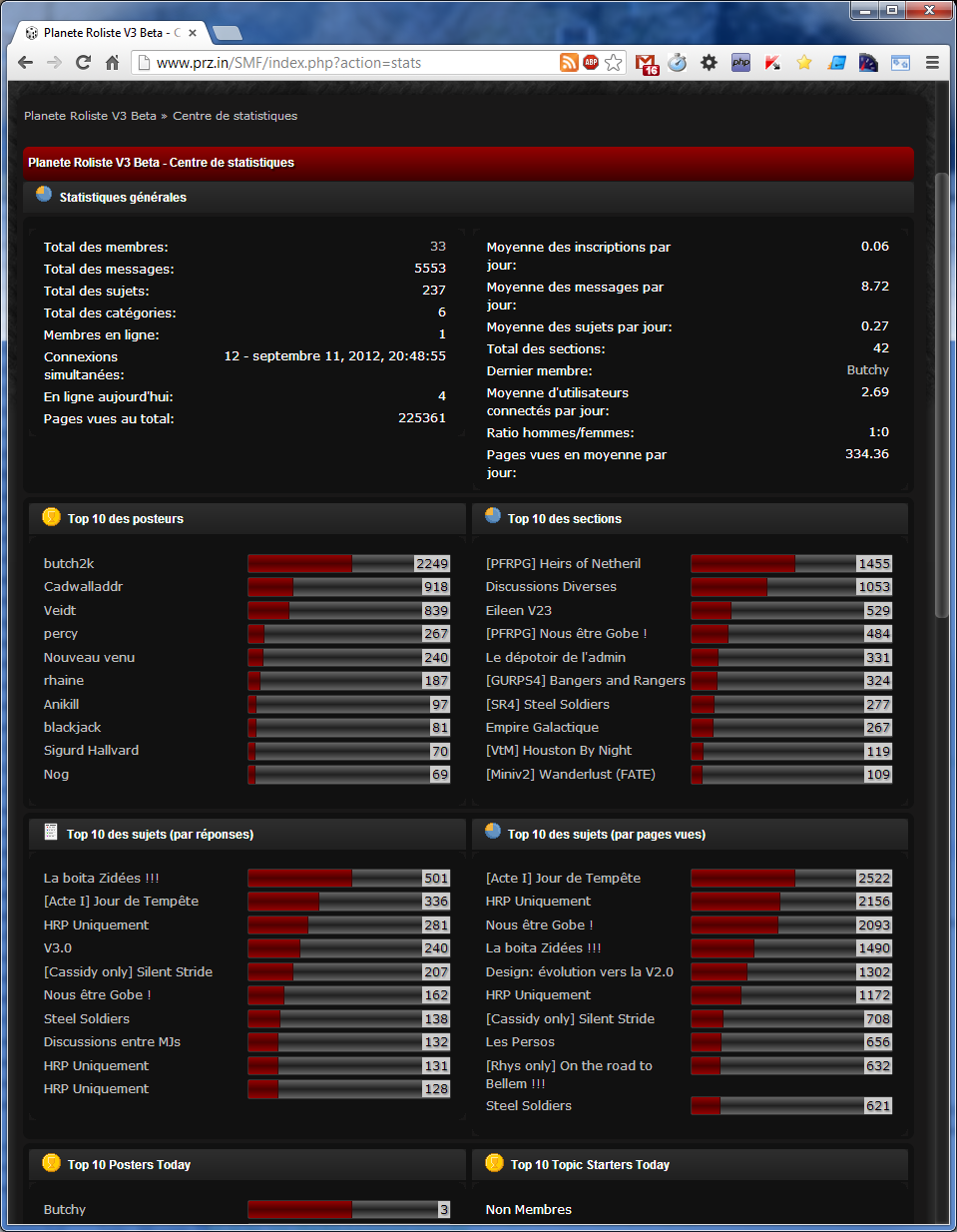 Le forum Planète Rôliste existe depuis 2006, il a pour vocation de promouvoir les jeux de rôles (JdR) et permettre de jouer des parties même pour ceux qui n'ont plus de table à disposition (au sens propre comme au sens figuré), à l'écrit en "Play by Post", grâce aux très nombreux outils à disposition, ou en chat vocal/vidéo pour ceux qui le souhaitent. Les expatriés, les nomades, les timides, les boulimiques du JdR, les petits nouveaux, les peujs et les meujs, tous sont les bienvenus au sein de notre communauté.