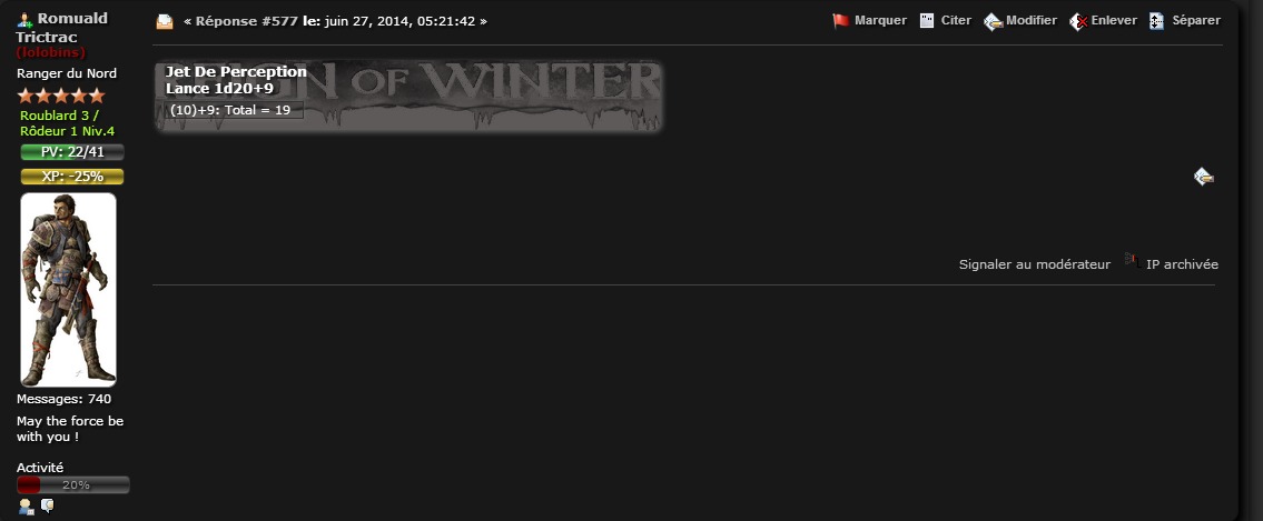 Le forum Planète Rôliste existe depuis 2006, il a pour vocation de promouvoir les jeux de rôles (JdR) et permettre de jouer des parties même pour ceux qui n'ont plus de table à disposition (au sens propre comme au sens figuré), à l'écrit en "Play by Post", grâce aux très nombreux outils à disposition, ou en chat vocal/vidéo pour ceux qui le souhaitent. Les expatriés, les nomades, les timides, les boulimiques du JdR, les petits nouveaux, les peujs et les meujs, tous sont les bienvenus au sein de notre communauté.