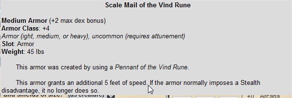 Armor. The armor is now an uncommon magic item that requires attunement. You gain a bonus to speed of 5 feet while you wear the armor, and if it normally imposes disadvantage on Stealth checks, it no longer does so.