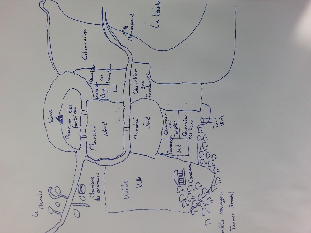 Ceci est une carte de la ville. Oui ça envoie moins du rêve que les autres illustrations et si quelqu'un estime qu'il sait mieux dessiner que moi, il est le bienvenu pour m'en fournir une copie.