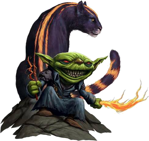 Tout occupés à maitriser le cougar vous n'avez pas remarqué que derrière Cupilla et Kya un gobelin est apparu, apparement capable de traverser les épais buissons d'orties et ronces aussi facilement que cette dernière. C'est un chaman sans aucun doute, équipé d'une multitude de colifichets et d'une bagette qu'il agite en psalmodiant des incantations, dirigées sur Unigo qui était restée aux cotés de Cupilla.