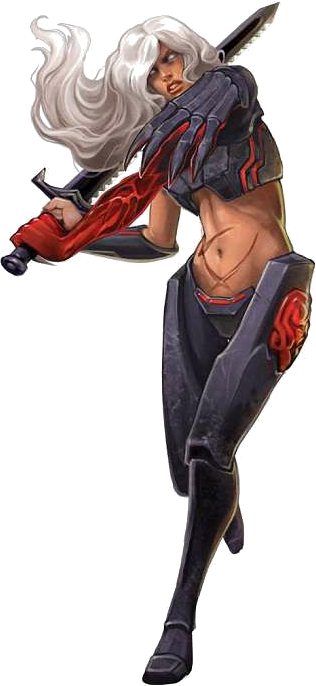 De l'autre coté il trouve Nualia, elle attend les intrus de pied ferme, une épée bâtarde en garde tenue de ses deux mains et à ses cotés un énorme mollosse démoniaque, juché sur la solide table de bois massif qui bloquait la porte à Toris.